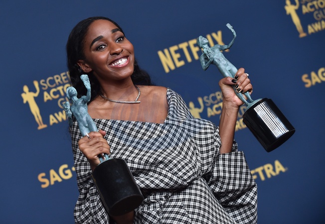 Ayo Edebiri in the press room at the 30th Annual SAG Awards at the Shrine Auditorium on February 24, 2024 in Los Angeles, CA.© OConnor-Arroyo/AFF-USA.com