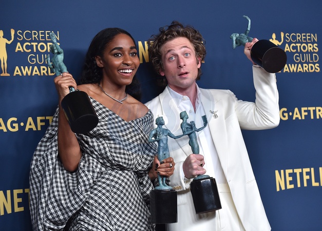 Ayo Edebiri and Jeremy Allen White in the press room at the 30th Annual SAG Awards at the Shrine Auditorium on February 24, 2024 in Los Angeles, CA.© OConnor-Arroyo/AFF-USA.com