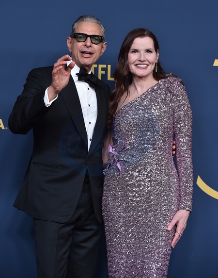 Jeff Goldblum and Geena Davis in the press room at the 30th Annual SAG Awards at the Shrine Auditorium on February 24, 2024 in Los Angeles, CA.© OConnor-Arroyo/AFF-USA.com