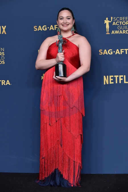 Lily Gladstone in the press room at the 30th Annual SAG Awards at the Shrine Auditorium on February 24, 2024 in Los Angeles, CA.© OConnor-Arroyo/AFF-USA.com