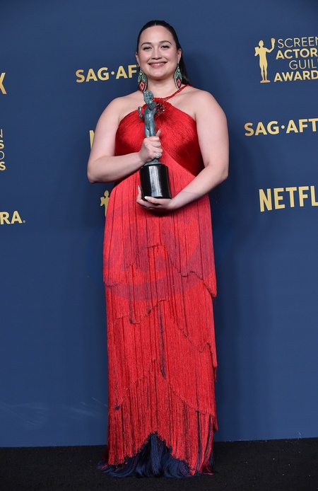Lily Gladstone in the press room at the 30th Annual SAG Awards at the Shrine Auditorium on February 24, 2024 in Los Angeles, CA.© OConnor-Arroyo/AFF-USA.com