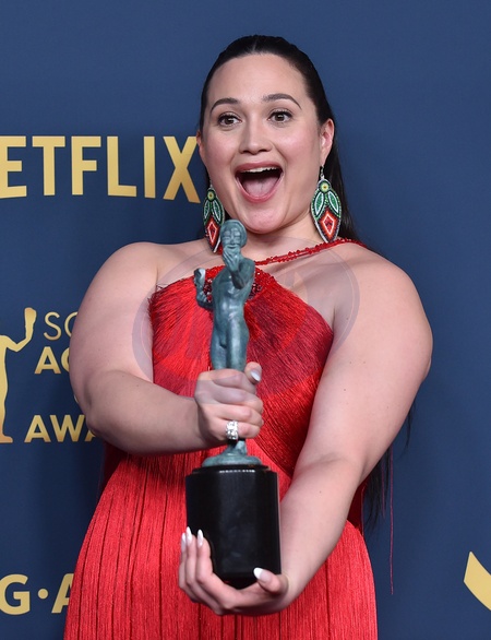 Lily Gladstone in the press room at the 30th Annual SAG Awards at the Shrine Auditorium on February 24, 2024 in Los Angeles, CA.© OConnor-Arroyo/AFF-USA.com
