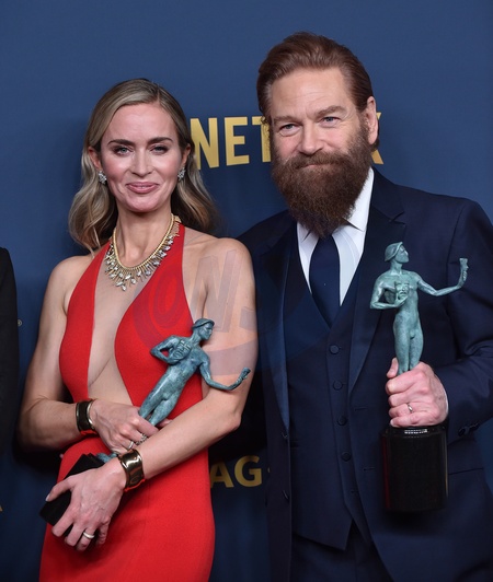 Emily Blunt and Kenneth Branagh in the press room at the 30th Annual SAG Awards at the Shrine Auditorium on February 24, 2024 in Los Angeles, CA.© OConnor-Arroyo/AFF-USA.com