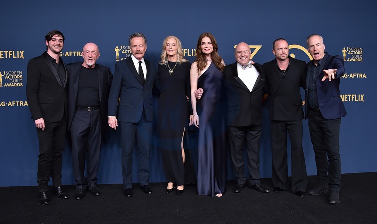 Bryan Cranston, Betsy Brandt, Aaron Paul and the cast of Breaking Bad in the press room at the 30th Annual SAG Awards at the Shrine Auditorium on February 24, 2024 in Los Angeles, CA.© OConnor-Arroyo/AFF-USA.com