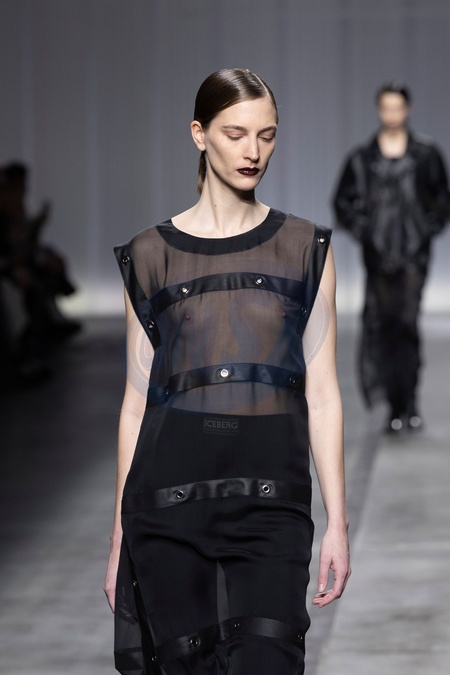 Iceberg - Models On Catwalk during Milan Fashion Week 2024 Ready To Wear For Fall Winter Fashion Show.Woman Women, Defile, Fashion Show Runway Collection, Pret A Porter, Modelwear, Modeschau Laufsteg Milano, Model, Fashion, Style, Look, Fashion Show, Runway, Catwalk, Credit:www.fashionpps.com / Avalon