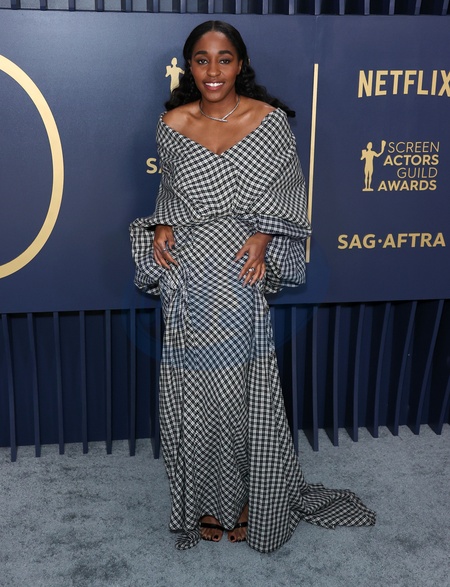 LOS ANGELES, CALIFORNIA, USA - FEBRUARY 24: Ayo Edebiri wearing a Luar look with Tabayer jewelry arrives at the 30th Annual Screen Actors Guild Awards held at the Shrine Auditorium and Expo Hall on February 24, 2024 in Los Angeles, California, United States., Credit:Xavier Collin / Avalon