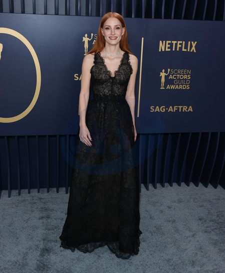 LOS ANGELES, CALIFORNIA, USA - FEBRUARY 24: Jessica Chastain wearing a custom Armani dress and DeBeers jewelry arrives at the 30th Annual Screen Actors Guild Awards held at the Shrine Auditorium and Expo Hall on February 24, 2024 in Los Angeles, California, United States., Credit:Xavier Collin / Avalon