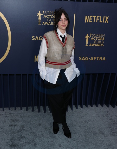 LOS ANGELES, CALIFORNIA, USA - FEBRUARY 24: Billie Eilish wearing Vivienne Westwood arrives at the 30th Annual Screen Actors Guild Awards held at the Shrine Auditorium and Expo Hall on February 24, 2024 in Los Angeles, California, United States., Credit:Xavier Collin / Avalon