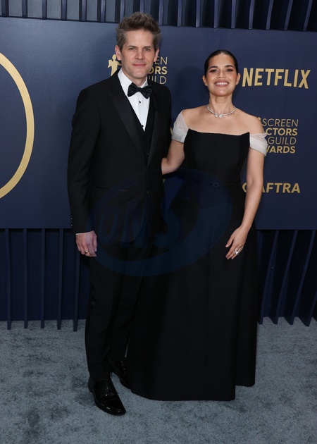 LOS ANGELES, CALIFORNIA, USA - FEBRUARY 24: Ryan Piers Williams and wife America Ferrera arrive at the 30th Annual Screen Actors Guild Awards held at the Shrine Auditorium and Expo Hall on February 24, 2024 in Los Angeles, California, United States., Credit:Xavier Collin / Avalon