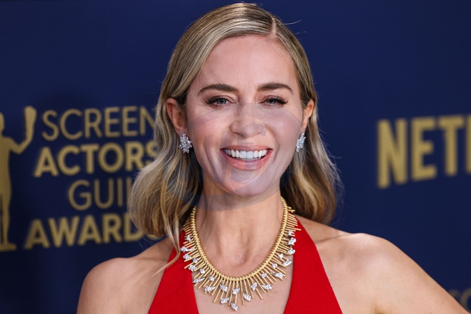 LOS ANGELES, CALIFORNIA, USA - FEBRUARY 24: Emily Blunt wearing Custom Louis Vuitton and Tiffany & Co. jewelry arrives at the 30th Annual Screen Actors Guild Awards held at the Shrine Auditorium and Expo Hall on February 24, 2024 in Los Angeles, California, United States., Credit:Xavier Collin / Avalon