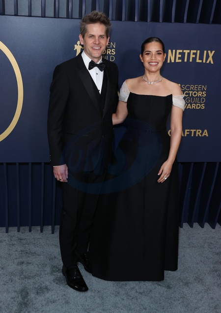 LOS ANGELES, CALIFORNIA, USA - FEBRUARY 24: Ryan Piers Williams and wife America Ferrera arrive at the 30th Annual Screen Actors Guild Awards held at the Shrine Auditorium and Expo Hall on February 24, 2024 in Los Angeles, California, United States., Credit:Xavier Collin / Avalon