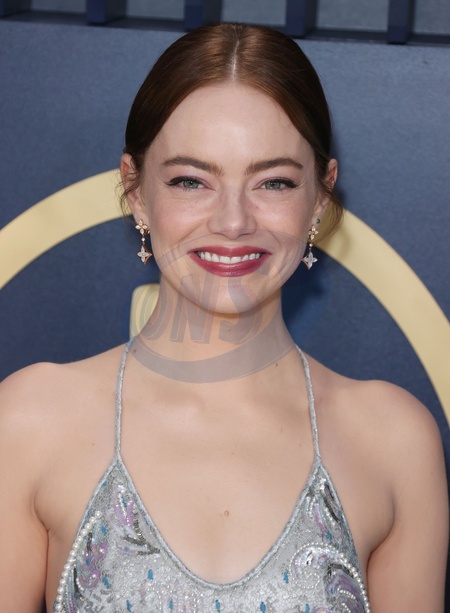 LOS ANGELES, CALIFORNIA, USA - FEBRUARY 24: Emma Stone wearing a Louis Vuitton metallic lace slip gown, embroidered with sequins, pearls and crystals fern leaf pattern and ivory sandals with Louis Vuitton High Jewelry arrives at the 30th Annual Screen Actors Guild Awards held at the Shrine Auditorium and Expo Hall on February 24, 2024 in Los Angeles, California, United States., Credit:Xavier Collin / Avalon