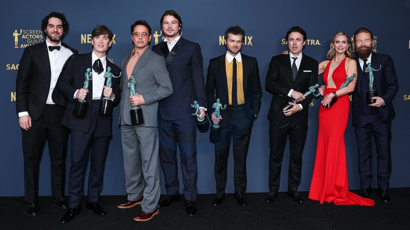 LOS ANGELES, CALIFORNIA, USA - FEBRUARY 24: Benny Safdie, Cillian Murphy, Robert Downey Jr., Josh Hartnett, Alden Ehrenreich, Casey Affleck, Emily Blunt and Kenneth Branagh, winners of the Outstanding Performance by a Cast in a Motion Picture award for 'Oppenheimer' pose in the press room at the 30th Annual Screen Actors Guild Awards held at the Shrine Auditorium and Expo Hall on February 24, 2024 in Los Angeles, California, United States., Credit:Xavier Collin / Avalon