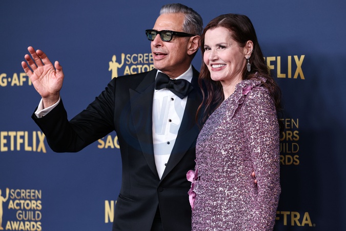 LOS ANGELES, CALIFORNIA, USA - FEBRUARY 24: Jeff Goldblum and Geena Davis pose in the press room at the 30th Annual Screen Actors Guild Awards held at the Shrine Auditorium and Expo Hall on February 24, 2024 in Los Angeles, California, United States., Credit:Xavier Collin / Avalon