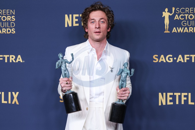 LOS ANGELES, CALIFORNIA, USA - FEBRUARY 24: Jeremy Allen White, winner of the Outstanding Performance by a Male Actor in a Comedy Series and Outstanding Performance by an Ensemble in a Comedy Series awards for 'The Bear' poses in the press room at the 30th Annual Screen Actors Guild Awards held at the Shrine Auditorium and Expo Hall on February 24, 2024 in Los Angeles, California, United States., Credit:Xavier Collin / Avalon