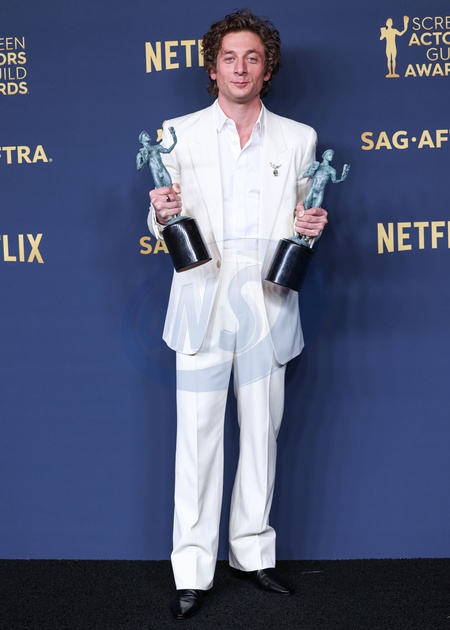 LOS ANGELES, CALIFORNIA, USA - FEBRUARY 24: Jeremy Allen White, winner of the Outstanding Performance by a Male Actor in a Comedy Series and Outstanding Performance by an Ensemble in a Comedy Series awards for 'The Bear' poses in the press room at the 30th Annual Screen Actors Guild Awards held at the Shrine Auditorium and Expo Hall on February 24, 2024 in Los Angeles, California, United States., Credit:Xavier Collin / Avalon