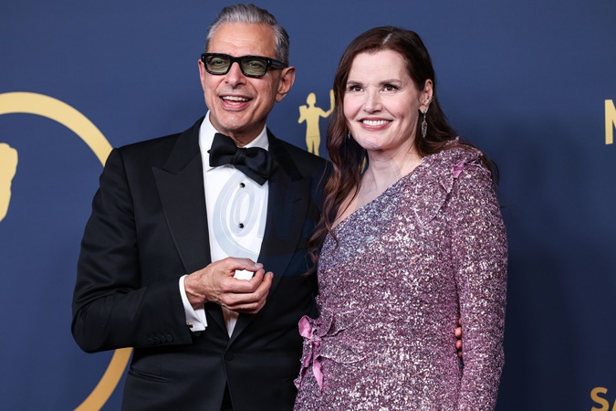 LOS ANGELES, CALIFORNIA, USA - FEBRUARY 24: Jeff Goldblum and Geena Davis pose in the press room at the 30th Annual Screen Actors Guild Awards held at the Shrine Auditorium and Expo Hall on February 24, 2024 in Los Angeles, California, United States., Credit:Xavier Collin / Avalon