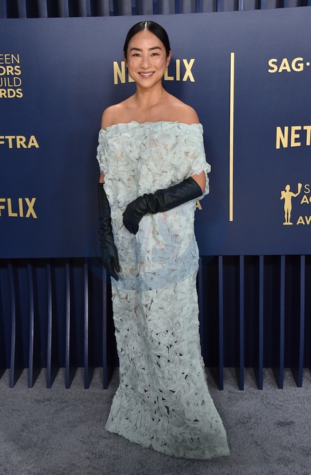 Greta Lee arriving to the 30th Annual SAG Awards at the Shrine Auditorium on February 24, 2024 in Los Angeles, CA.© OConnor-Arroyo/AFF-USA.com