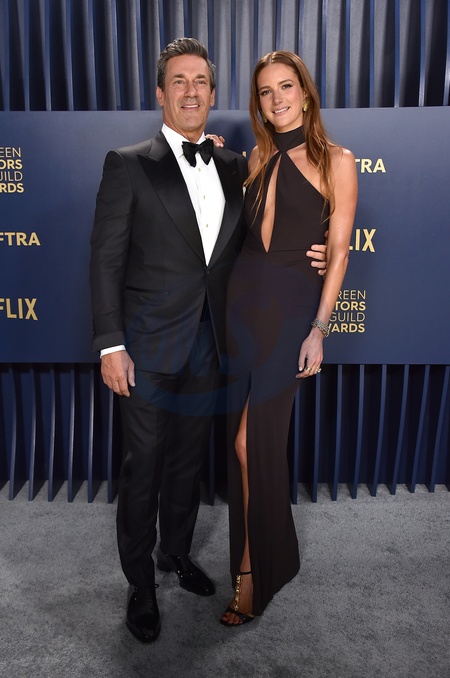 Jon Hamm and Anna Osceola arriving to the 30th Annual SAG Awards at the Shrine Auditorium on February 24, 2024 in Los Angeles, CA.© OConnor-Arroyo/AFF-USA.com