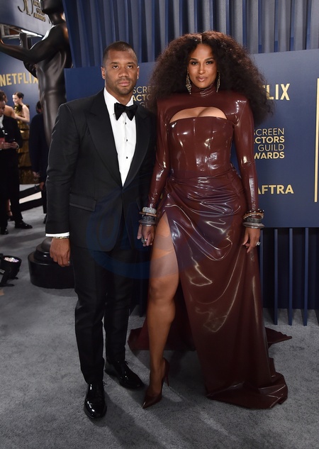 Russell Wilson and Ciara arriving to the 30th Annual SAG Awards at the Shrine Auditorium on February 24, 2024 in Los Angeles, CA.© OConnor-Arroyo/AFF-USA.com