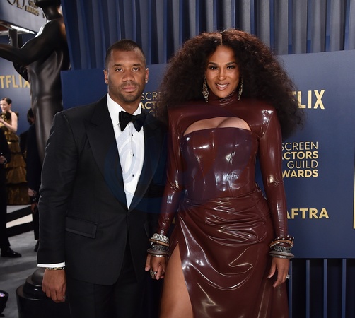 Russell Wilson and Ciara arriving to the 30th Annual SAG Awards at the Shrine Auditorium on February 24, 2024 in Los Angeles, CA.© OConnor-Arroyo/AFF-USA.com