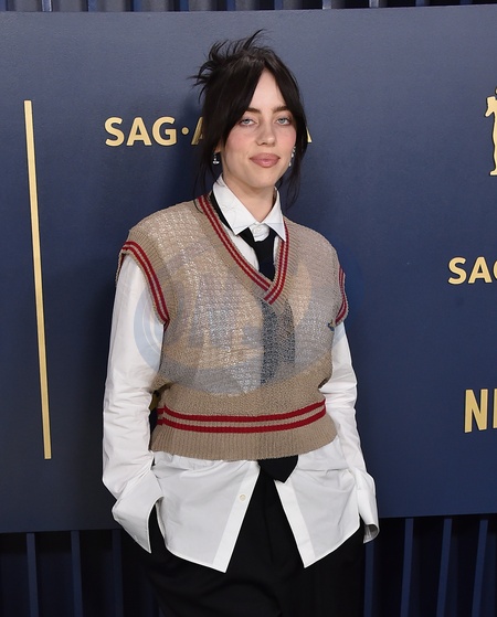 Billie Eilish arriving to the 30th Annual SAG Awards at the Shrine Auditorium on February 24, 2024 in Los Angeles, CA.© OConnor-Arroyo/AFF-USA.com