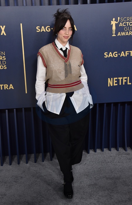 Billie Eilish arriving to the 30th Annual SAG Awards at the Shrine Auditorium on February 24, 2024 in Los Angeles, CA.© OConnor-Arroyo/AFF-USA.com
