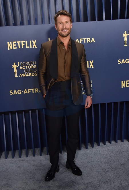 Glen Powell arriving to the 30th Annual SAG Awards at the Shrine Auditorium on February 24, 2024 in Los Angeles, CA.© OConnor-Arroyo/AFF-USA.com
