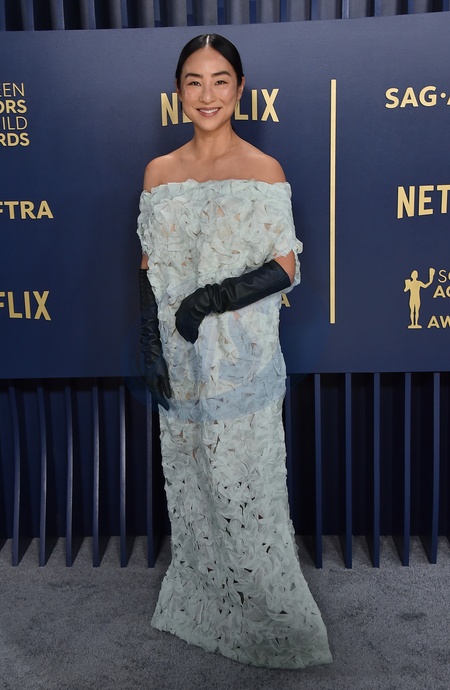 Greta Lee arriving to the 30th Annual SAG Awards at the Shrine Auditorium on February 24, 2024 in Los Angeles, CA.© OConnor-Arroyo/AFF-USA.com