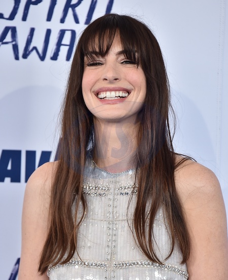 Anne Hathaway arriving to the 2024 Film Independent Spirit Awards at the Santa Monica Beach on February 25, 2024 in Santa Monica