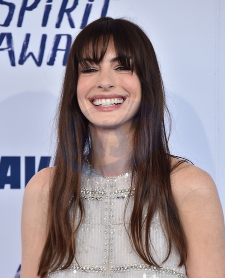 Anne Hathaway arriving to the 2024 Film Independent Spirit Awards at the Santa Monica Beach on February 25, 2024 in Santa Monica