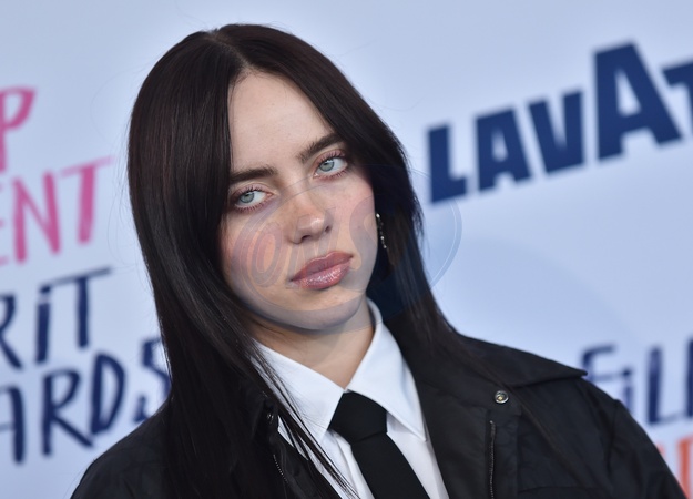 Billie Eilish arriving to the 2024 Film Independent Spirit Awards at the Santa Monica Beach on February 25, 2024 in Santa Monica