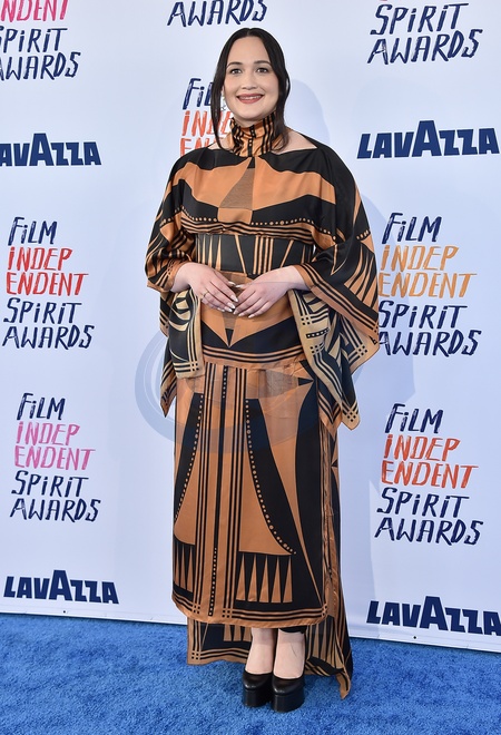Lily Gladstone arriving to the 2024 Film Independent Spirit Awards at the Santa Monica Beach on February 25, 2024 in Santa Monica
