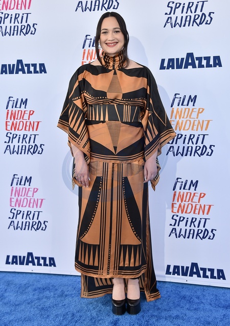 Lily Gladstone arriving to the 2024 Film Independent Spirit Awards at the Santa Monica Beach on February 25, 2024 in Santa Monica