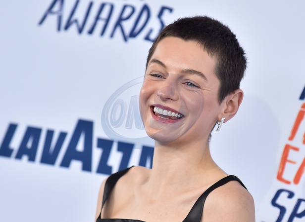 Emma Corrin arriving to the 2024 Film Independent Spirit Awards at the Santa Monica Beach on February 25, 2024 in Santa Monica