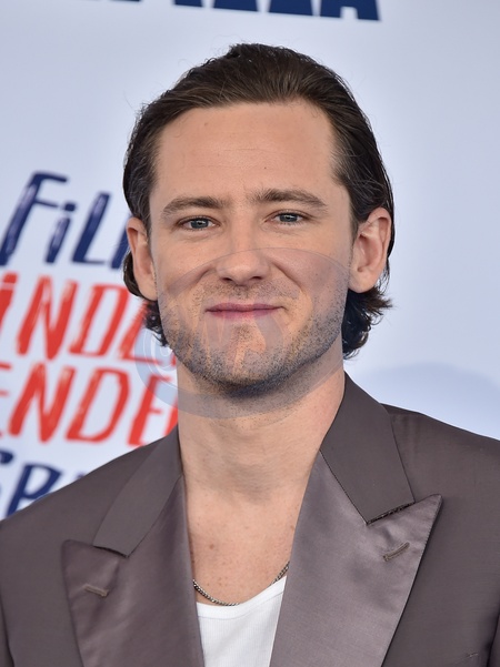 Lewis Pullman arriving to the 2024 Film Independent Spirit Awards at the Santa Monica Beach on February 25, 2024 in Santa Monica