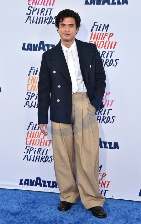 Charles Melton arriving to the 2024 Film Independent Spirit Awards at the Santa Monica Beach on February 25, 2024 in Santa Monica