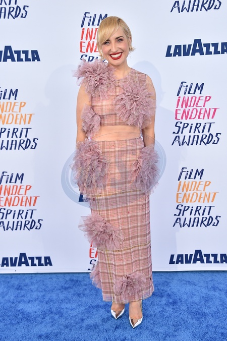 Zoe Lister Jones arriving to the 2024 Film Independent Spirit Awards at the Santa Monica Beach on February 25, 2024 in Santa Monica