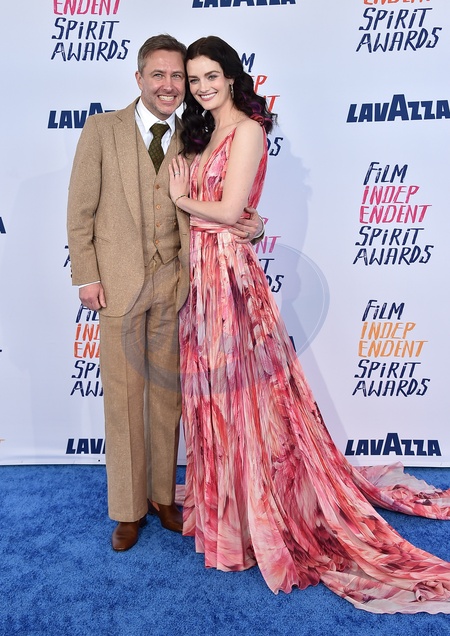 Chris Harwick and Lydia Hearst arriving to the 2024 Film Independent Spirit Awards at the Santa Monica Beach on February 25, 2024 in Santa Monica