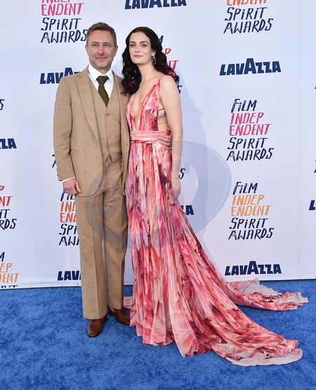 Chris Harwick and Lydia Hearst arriving to the 2024 Film Independent Spirit Awards at the Santa Monica Beach on February 25, 2024 in Santa Monica