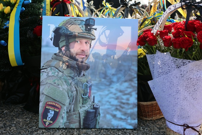 IVANO-FRANKIVSK REGION, UKRAINE - FEBRUARY 19, 2024 - A portrait of Roman Kornuta (call sign "Mazepa") who died in the war with Russia, is seen during a farewell ceremony, Chukalivka, Ivano-Frankivsk region, western Ukraine., Credit:Yurii Rylchuk / Avalon