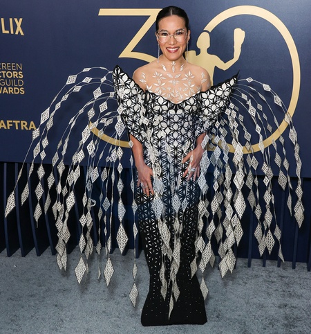 LOS ANGELES, CALIFORNIA, USA - FEBRUARY 24: Ali Wong wearing an Iris Van Herpen Couture dress and Brandon Blackwood shoes arrives at the 30th Annual Screen Actors Guild Awards held at the Shrine Auditorium and Expo Hall on February 24, 2024 in Los Angeles, California, United States., Credit:Xavier Collin / Avalon