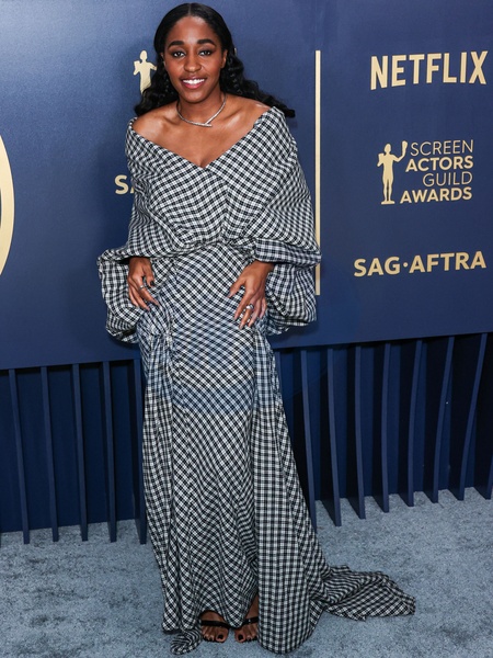 LOS ANGELES, CALIFORNIA, USA - FEBRUARY 24: Ayo Edebiri wearing a Luar look with Tabayer jewelry arrives at the 30th Annual Screen Actors Guild Awards held at the Shrine Auditorium and Expo Hall on February 24, 2024 in Los Angeles, California, United States., Credit:Xavier Collin / Avalon