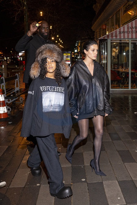 Exclusif - Bianca Censori et North West vont au restaurant Popeyes après le concert de Kanye à l'Accor Arena puis changent d'avis pour aller au Mc Donald le 25 février 2024. Exclusive - For Germany call for price - No web en Suisse / Belgique Bianca Censori and North West go to Popeyes after Kanye's concert at the Accor Arena, then change their minds and go to McDonald's on 25 February 2024.