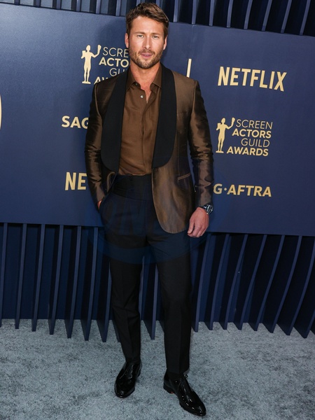 LOS ANGELES, CALIFORNIA, USA - FEBRUARY 24: Glen Powell wearing Brioni arrives at the 30th Annual Screen Actors Guild Awards held at the Shrine Auditorium and Expo Hall on February 24, 2024 in Los Angeles, California, United States., Credit:Xavier Collin / Avalon