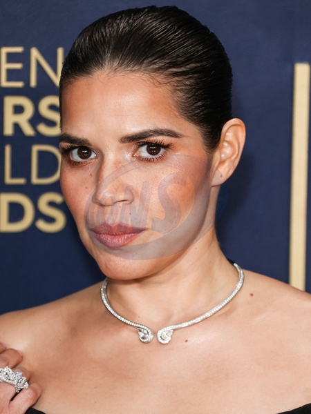 LOS ANGELES, CALIFORNIA, USA - FEBRUARY 24: America Ferrera wearing a Dior dress, Stewart Weitzman shoes, Debeers jewelry and carring a Tyler Ellis clutch arrives at the 30th Annual Screen Actors Guild Awards held at the Shrine Auditorium and Expo Hall on February 24, 2024 in Los Angeles, California, United States., Credit:Xavier Collin / Avalon