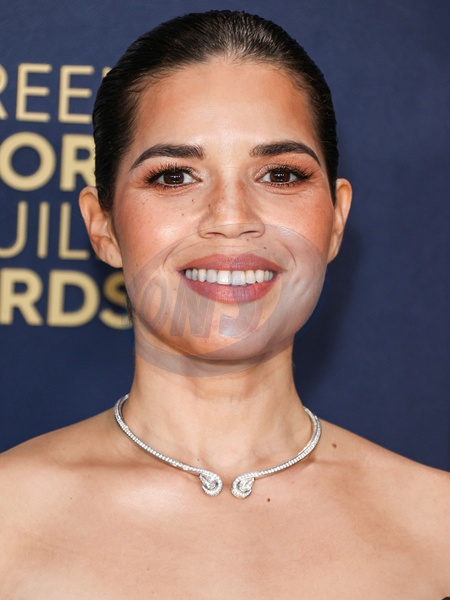 LOS ANGELES, CALIFORNIA, USA - FEBRUARY 24: America Ferrera wearing a Dior dress, Stewart Weitzman shoes, Debeers jewelry and carring a Tyler Ellis clutch arrives at the 30th Annual Screen Actors Guild Awards held at the Shrine Auditorium and Expo Hall on February 24, 2024 in Los Angeles, California, United States., Credit:Xavier Collin / Avalon