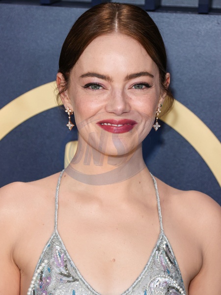 LOS ANGELES, CALIFORNIA, USA - FEBRUARY 24: Emma Stone wearing a Louis Vuitton metallic lace slip gown, embroidered with sequins, pearls and crystals fern leaf pattern and ivory sandals with Louis Vuitton High Jewelry arrives at the 30th Annual Screen Actors Guild Awards held at the Shrine Auditorium and Expo Hall on February 24, 2024 in Los Angeles, California, United States., Credit:Xavier Collin / Avalon
