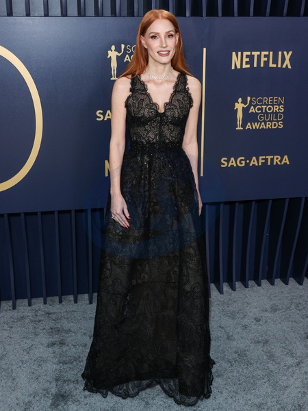 LOS ANGELES, CALIFORNIA, USA - FEBRUARY 24: Jessica Chastain wearing a custom Armani dress and DeBeers jewelry arrives at the 30th Annual Screen Actors Guild Awards held at the Shrine Auditorium and Expo Hall on February 24, 2024 in Los Angeles, California, United States., Credit:Xavier Collin / Avalon
