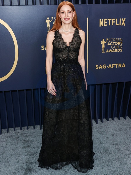 LOS ANGELES, CALIFORNIA, USA - FEBRUARY 24: Jessica Chastain wearing a custom Armani dress and DeBeers jewelry arrives at the 30th Annual Screen Actors Guild Awards held at the Shrine Auditorium and Expo Hall on February 24, 2024 in Los Angeles, California, United States., Credit:Xavier Collin / Avalon